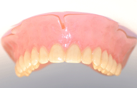 The cosmetic denture uses multi layered teeth for a more natural and lifelike appearance